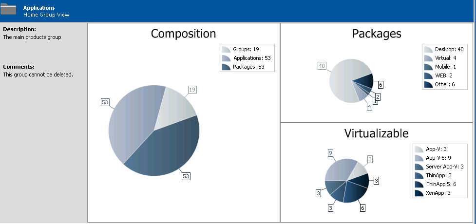 • Packages—Displays the number of packages in each of the following categories: installers (Windows Installer packages and legacy installers), virtual packages, mobile apps, and other.