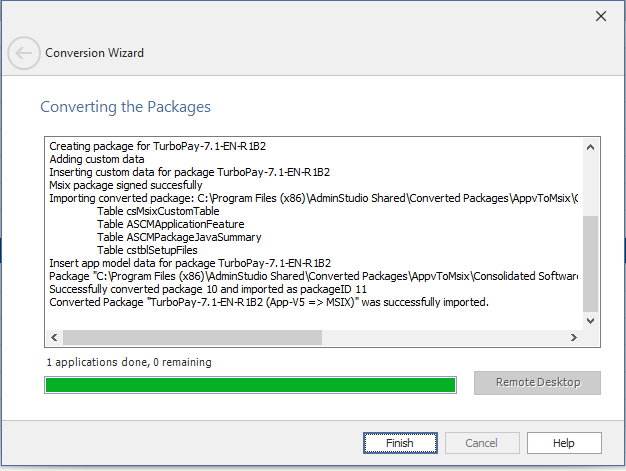 - Click Finish to close the wizard. The converted package is now listed in the tree.
