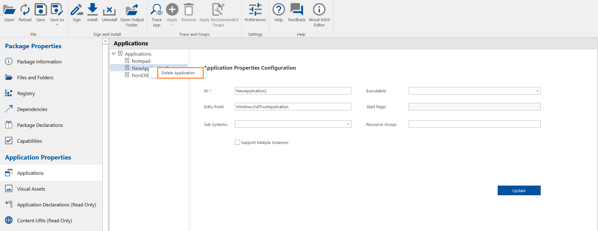 - In the left pane, click on Applications under Application Properties. The Applications page opens.